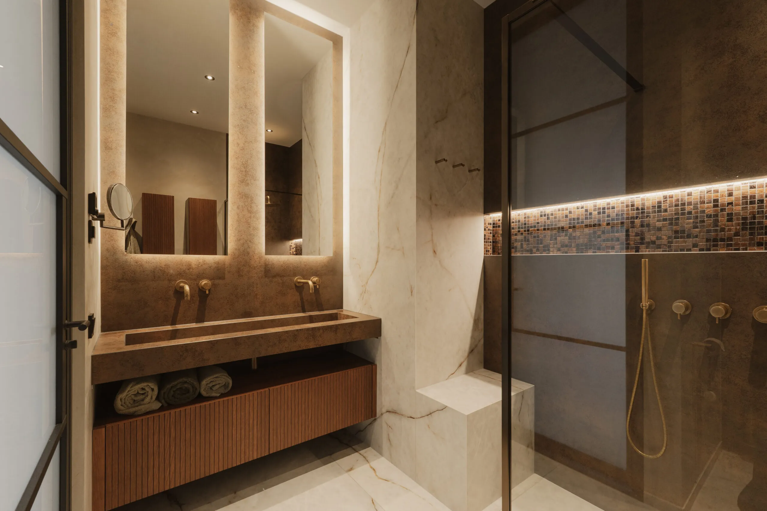 In uw eerste afspraak tekenen wij voor u uw toekomstige badkamer uit in ons uitgebreide 3D-programma. Door middel van VR (virtual reality) kunt u zelfs al tijdens deze eerste afspraak door u eigen ontwerp lopen. Tijdens de tweede afspraak laten wij u fotorealistische 3D-beelden zien van de badkamer en ontvangt u de offerte. Mocht alles akkoord zijn, dan gaan wij over tot de realisatie van uw badkamer! Voordat u het weet kunt u thuis door uw eigen ontworpen badkamer lopen.